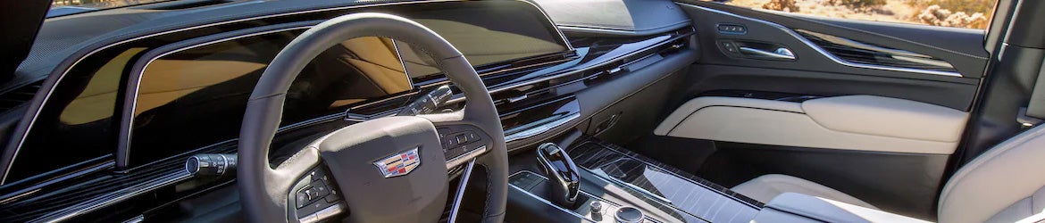 The Escalade's luxurious exterior is only matched by its comfortable and spacious interior. The cabin features luxury materials, including wood accents and leather trim and the comfortable front seats can be equipped with heating and ventilation. The futuristic cockpit of the SUV features a first-ever 38-inch curved OLED display with industry-leading pixel density and rich color. This display combines gauges and instruments with infotainment functionality and puts it all at your fingertips. Other interior features include an available console refrigerator with freezer mode, optional ambient lighting, a panoramic sunroof, and 121 cubic feet of cargo room.