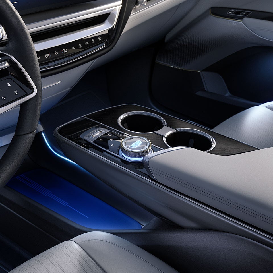 The 2023 Lyriq comes in one well-equipped trim level called the Luxury. It has 20-inch wheels, LED exterior lighting with startup animation, a heated windshield, rain-sensing windshield wipers, and heated and power-folding side exterior mirrors. It also has a hands-free liftgate and a fixed-glass panoramic sunroof. You can upgrade to 22-inch wheels and choose from several exterior colors, including Opulent Blue Metallic, Chrystal White Tricoat, and Stellar Black Metallic.