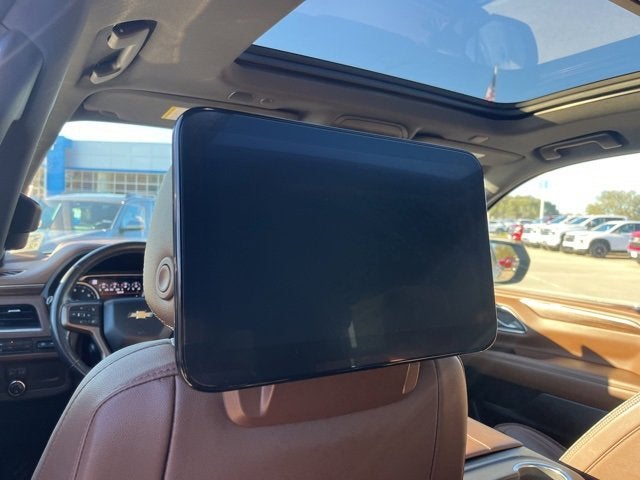 Preferred Equipment Group 3LZ (15 Diagonal Multi-Color Head-Up Display, 1st & 2nd Row Color-Keyed Carpeted Floor Mats, 2 USB Data Ports, 3rd Row 60/40 Power-Folding Split-Bench Seat, Automatic Heated Steering Wheel, Bright Front & Rear Door Sill Plates, Chrome Door Handles w/Body-Color Strip, Color-Keyed Carpeting Floor Covering, Driver & Front Outboard Passenger Airbags, Dual Exhaust System, Enhanced Driver Information Center, Floor Console w/Storage Area, Front & Rear Park Assist, Hands-Free Rear Power Programmable Liftgate, HD Radio, HD Surround Vision, Heated 2nd Row Outboard Seats, Infotainment Display, Inside Rearview Auto-Dimming Rear Camera Mirror, Lane Change Alert w/Side Blind Zone Alert, Lane Keep Assist w/Lane Departure Warning, Leather-Wrapped Steering Wheel, LED Daytime Running Lamps, Memory Settings, Outside Heated Power-Adjustable Mirrors, Power Release 2nd Row Bucket Seats, Power Tilt & Telescopic Steering Column, Rear Camera Mirror Washer, Rear Cross Traffic Alert, Rear Pedestrian Alert, Remote Start, Safety Alert Seat, SiriusXM NavTraffic, SiriusXM Radio w/360L, and Universal Home Remote), Jet Black/Mocha Leather, 10 Speakers, 12-Way Power Driver & Passenger Seat Adjusters, 3.23 Rear Axle Ratio, 3rd row seats: split-bench, 4-Wheel Disc Brakes, ABS brakes, Adaptive Cruise Control, Adaptive suspension, Air Conditioning, Alloy wheels, AM/FM radio: SiriusXM with 360L, Apple CarPlay/Android Auto, Auto High-beam Headlights, Auto-dimming door mirrors, Auto-dimming Rear-View mirror, Auto-leveling suspension, Automatic temperature control, Bose 10-Speaker Centerpoint Surround Audio Sys Ft, Brake assist, Bumpers: body-color, Compass, Delay-off headlights, Driver door bin, Driver vanity mirror, Dual front impact airbags, Dual front side impact airbags, Dual-Pane Power Panoramic Sunroof, Electronic Stability Control, Emergency communication system: OnStar and Chevrolet connected services capable, Enhanced Automatic Emergency Braking, Four wheel independent suspension, Front anti-roll bar, Front Bucket Seats, Front Center Armrest, Front dual zone A/C, Front High-Back Reclining Bucket Seats, Front reading lights, Fully automatic headlights, Garage door transmitter, Heads-Up Display, Heated & Ventilated Driver & Front Passenger Seats, Heated door mirrors, Heated Driver & Front Passenger Seats, Heated front seats, Heated rear seats, Heated steering wheel, Illuminated entry, Leather steering wheel, Low tire pressure warning, Magnetic Ride Control Suspension, Memory seat, Navigation System, Not Equipped w/Automatic Stop/Start, Not Equipped w/Steering Column Lock, Not Equipped w/Wireless Charging, Occupant sensing airbag, Outside temperature display, Overhead airbag, Overhead console, Panic alar