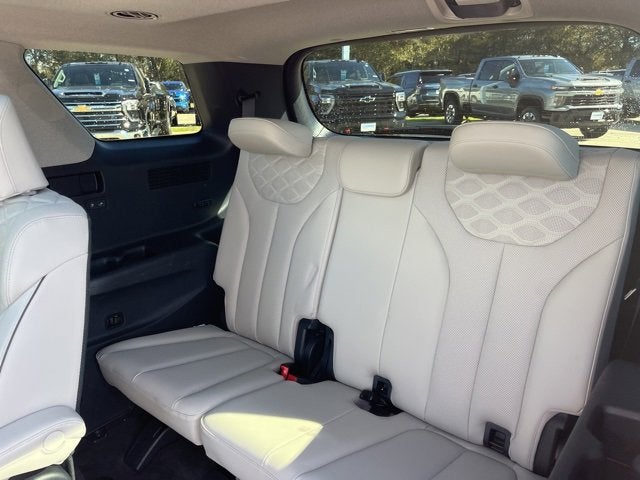 Cargo Package (Cargo Block, Cargo Net, and Cargo Tray), Option Group 01, 12 Speakers, 3.648 Axle Ratio, 3rd row seats: split-bench, 4-Wheel Disc Brakes, ABS brakes, Air Conditioning, Alloy wheels, AM/FM radio: SiriusXM, Apple CarPlay & Android Auto, Auto High-beam Headlights, Auto-dimming Rear-View mirror, Auto-leveling suspension, Automatic temperature control, Brake assist, Bumpers: body-color, Cargo Cover/Screen, Carpeted Floor Mats, Compass, Delay-off headlights, Driver door bin, Driver vanity mirror, Dual front impact airbags, Dual front side impact airbags, Electronic Stability Control, Emergency communication system: Blue Link Connected Car Service (3-year complimentary subscription), Four wheel independent suspension, Front anti-roll bar, Front Bucket Seats, Front Center Armrest, Front dual zone A/C, Front reading lights, Fully automatic headlights, Garage door transmitter: HomeLink, harman/kardon® Speakers, Heads-Up Display, Heated & Ventilated Front Bucket Seats, Heated door mirrors, Heated front seats, Heated rear seats, Heated steering wheel, Illuminated entry, Knee airbag, Low tire pressure warning, Memory seat, Navigation System, Occupant sensing airbag, Outside temperature display, Overhead airbag, Overhead console, Panic alarm, Passenger door bin, Passenger vanity mirror, Power door mirrors, Power driver seat, Power Liftgate, Power moonroof, Power passenger seat, Power steering, Power windows, Premium Nappa Leather Seat Trim, Radio data system, Radio: AM/FM/MP3 Premium Audio System, Rain sensing wipers, Rear air conditioning, Rear anti-roll bar, Rear audio controls, Rear reading lights, Rear window defroster, Rear window wiper, Reclining 3rd row seat, Remote keyless entry, Security system, Speed control, Speed-sensing steering, Split folding rear seat, Spoiler, Steering wheel mounted audio controls, Tachometer, Telescoping steering wheel, Tilt steering wheel, Traction control, Trip computer, Turn signal indicator mirrors, Variably intermittent wipers, Ventilated front seats, Ventilated rear seats, Wheel Locks, and Wheels: 20 x 7.5J Split 5-Spoke Machined Alloy.