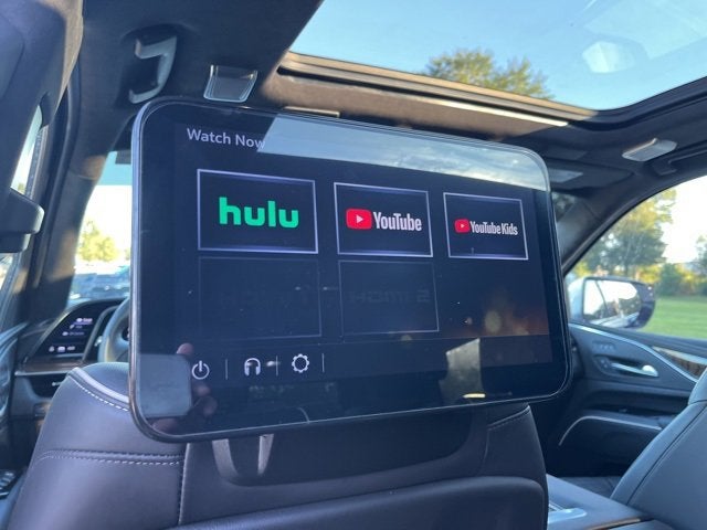 Certified. CARFAX One-Owner. Clean CARFAX. **GM CERTIFIED**, **CLEAN CARFAX/NO ACCIDENT HISTORY**, **ONE OWNER**, AWD, Jet Black Leather, 16.9 Diagonal OLED Infotainment Screen, 2-Presets Memory For Driver Seat Adjuster, 2-Speed Active Transfer Case, 3.23 Axle Ratio, 3rd row seats: split-bench, 4-Way Power Driver Lumbar Seat Adjuster, 4-Way Power Front Passenger Lumbar Seat Adjuster, 8-Way Power Driver Seat Adjuster, 8-Way Power Front Passenger Seat Adjuster, A/V remote, Adaptive Cruise Control, Adaptive suspension, Air Ride Adaptive Suspension, AKG Studio Reference 36-Speaker Audio System, All-Weather Floor Liner Package (LPO), Alloy wheels, AM/FM radio: SiriusXM with 360L, Apple CarPlay/Android Auto, Audio memory, Auto High-beam Headlights, Auto tilt-away steering wheel, Auto-dimming door mirrors, Auto-dimming Rear-View mirror, Automatic Seat Belt Tightening, Automatic temperature control, Body-Color Door Handles, Brake assist, Bumpers: body-color, Compass, Delay-off headlights, Door auto-latch, Door Lock & Latch Shields, Driver door bin, Driver vanity mirror, Dual front impact airbags, Dual front side impact airbags, Electronic Limited-Slip Differential, Electronic Stability Control, Emergency communication system: OnStar and Cadillac connected services capable, Enhanced Automatic Emergency Braking, Enhanced Automatic Parking Assist, Exterior Parking Camera Rear, Extra Capacity Cooling System, Floor Console w/Covered Storage, Four wheel independent suspension, Front anti-roll bar, Front Auxiliary 12-volt Power Outlet, Front Bucket Seats, Front Center Armrest w/Storage, Front dual zone A/C, Front reading lights, Full Semi-Aniline Leather Seat Trim, Fully automatic headlights, Garage door transmitter, Genuine wood console insert, Genuine wood dashboard insert, Genuine wood door panel insert, Glass Breakage Sensor, HD Radio, Headphones, Heads-Up Display, Heated & Ventilated Driver & Front Passenger Seats, Heated door mirrors, Heated Driver & Front Passenger Seats, Heated front seats, Heated rear seats, Heated steering wheel, Heavy-Duty Trailering Package, Hitch Guidance w/Hitch View, Illuminated entry, Illuminating Front & Rear Sill Plates, Integrated Trailer Brake Controller, Leather steering wheel, Low tire pressure warning, Magnetic Ride Control Suspension, Memory seat, Navigation System, Occupant sensing airbag, Outside temperature display, Overhead airbag, Overhead console, Panic alarm, Passenger door bin, Passenger vanity mirror, Platinum Interior Trim, Power door mirrors, Power driver seat, Power Liftgate, Power Lumbar Massage Driver Seat, Power Lumbar Massage Front Passenger Seat, Power moonroof, Power Panoramic Tilt-Sliding Sunroof, Power passenger seat, Power steering, Power windows, Power-Retractable Assist Steps, Preferred Equipment Group 1SH, Radio data system, Radio: AM/FM w/Navigation, Rain sensing wipers, Rear air conditioning, Rear anti-roll bar, Rear audio controls, Rear Camera Mirror, Rear Camera Mirror Washer, Rear Cross Traffic Alert, Rear reading lights, Rear Seat Entertainment System, Rear window defroster, Rear window wiper, Reconfigurable Full-Color Head-Up Display, Remote keyless entry, Reverse Automatic Braking, Running Board Assist Steps, Security system, SiriusXM w/360L, Smart Trailer Integration Indicator, Soft Closing Front & Rear Doors, Speed control, Split folding rear seat, Spoiler, Steering wheel memory, Steering wheel mounted audio controls, Tachometer, Teen Driver, Telescoping steering wheel, Theft-Deterrent Alarm System, Tilt steering wheel, Touring Package, Traction control, Trailer Side Blind Zone Alert, Trailer Tire Pressure Monitoring System, Trailering Assist Guidelines, Trip computer, Turn signal indicator mirrors, Variably intermittent wipers, Vehicle Inclination Sensor, Vehicle Interior Movement Sensor, Ventilated front seats, Vertical Cargo Net (LPO), Voltmeter, Wheel Locks, Wheels: 22 12-Spoke Polished Alloy, Wired Auxiliary Trail